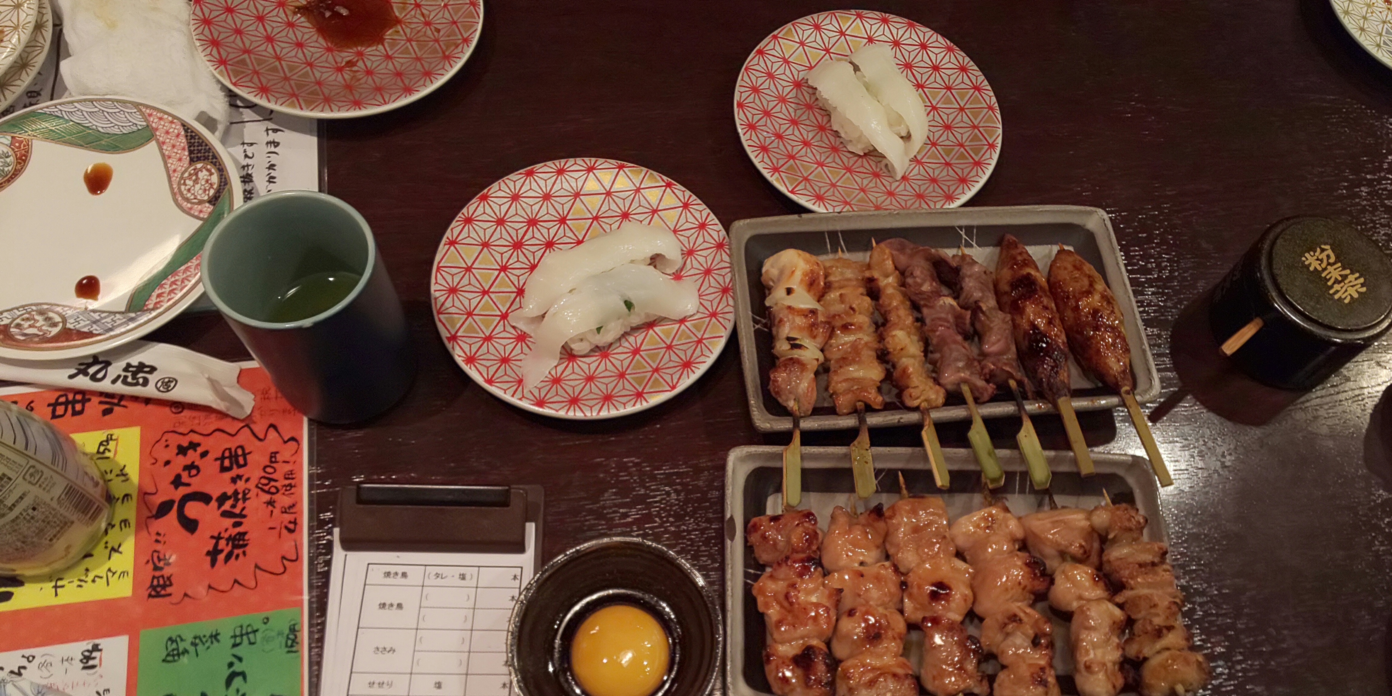 大人気店で、結構待たされた。寿司屋だけど、焼き鳥焼いているびっくり。